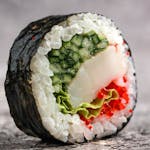 8x uramaki wegańskie obłożone kapustą pak choi (trawa morska, awokado, rzodkiew, ogórek, sos ostry, masago arare)