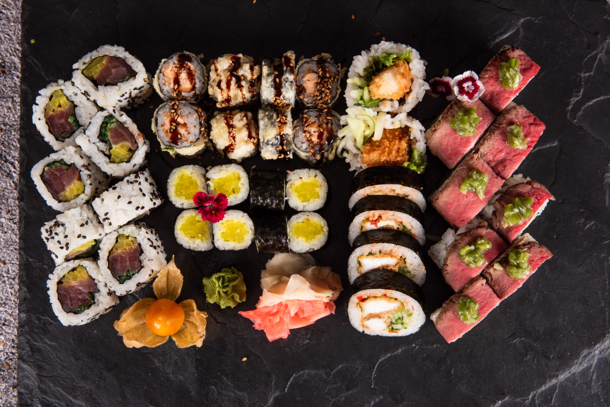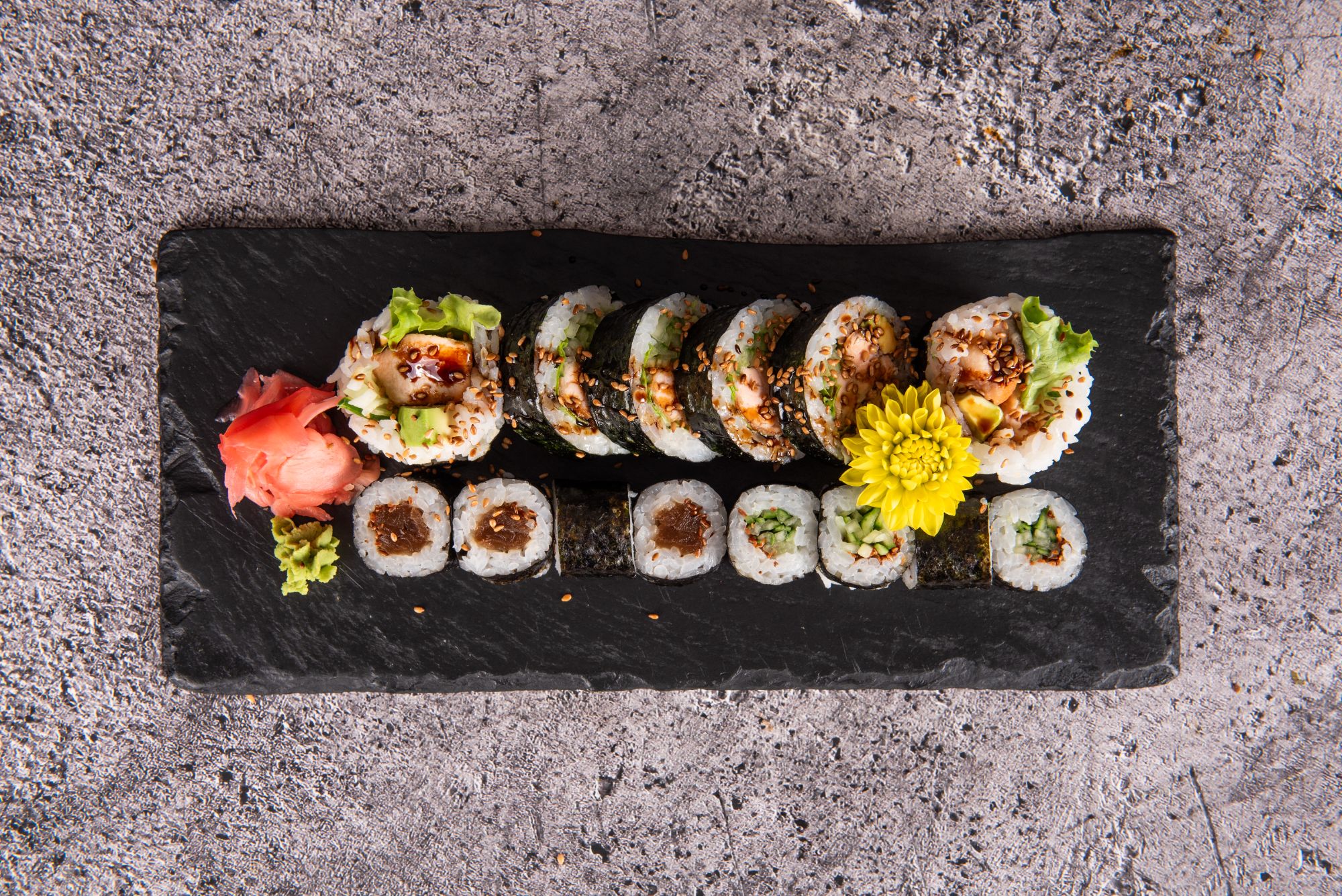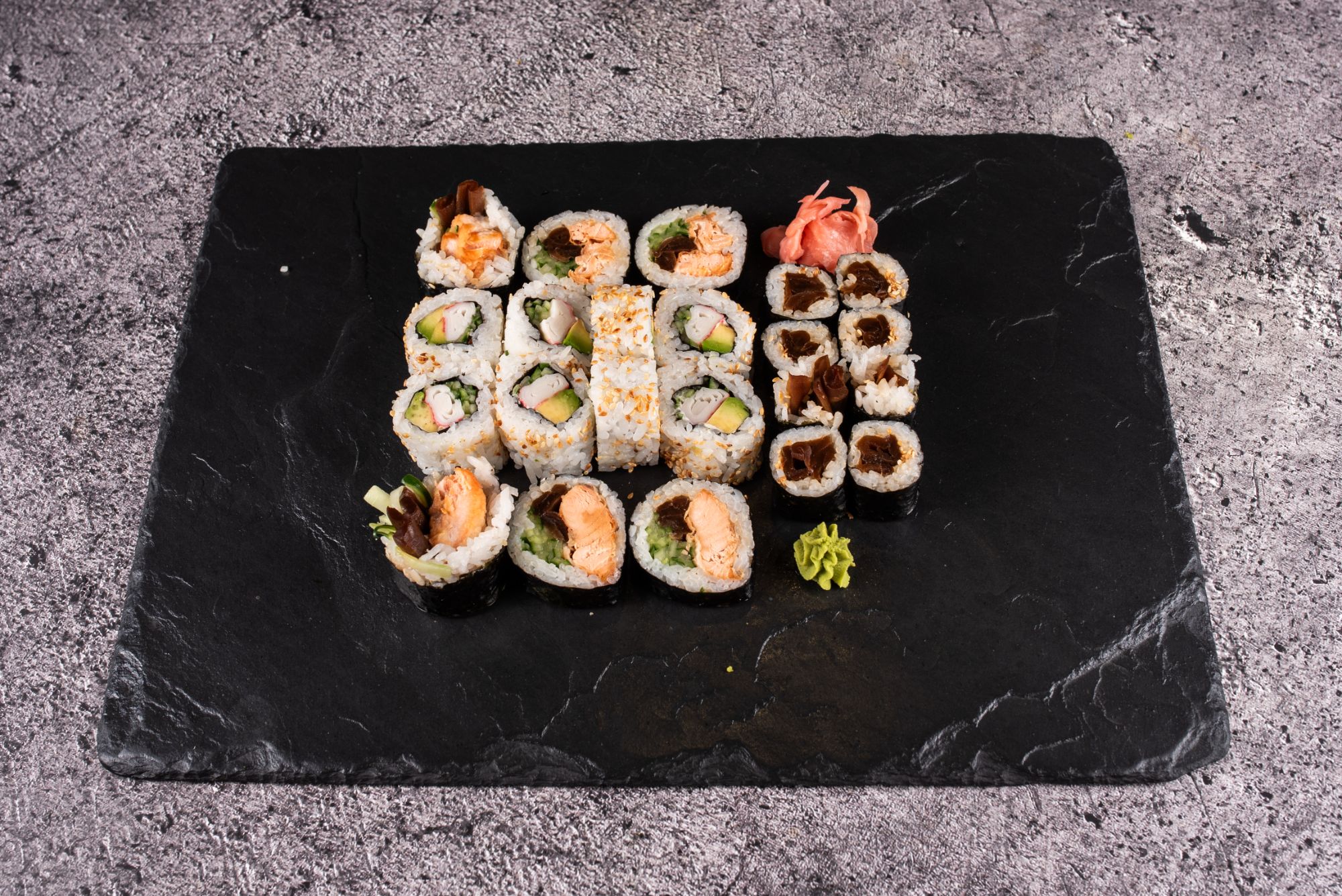 kizami, awokado, rzodkiew marynowana, ogórek, serek