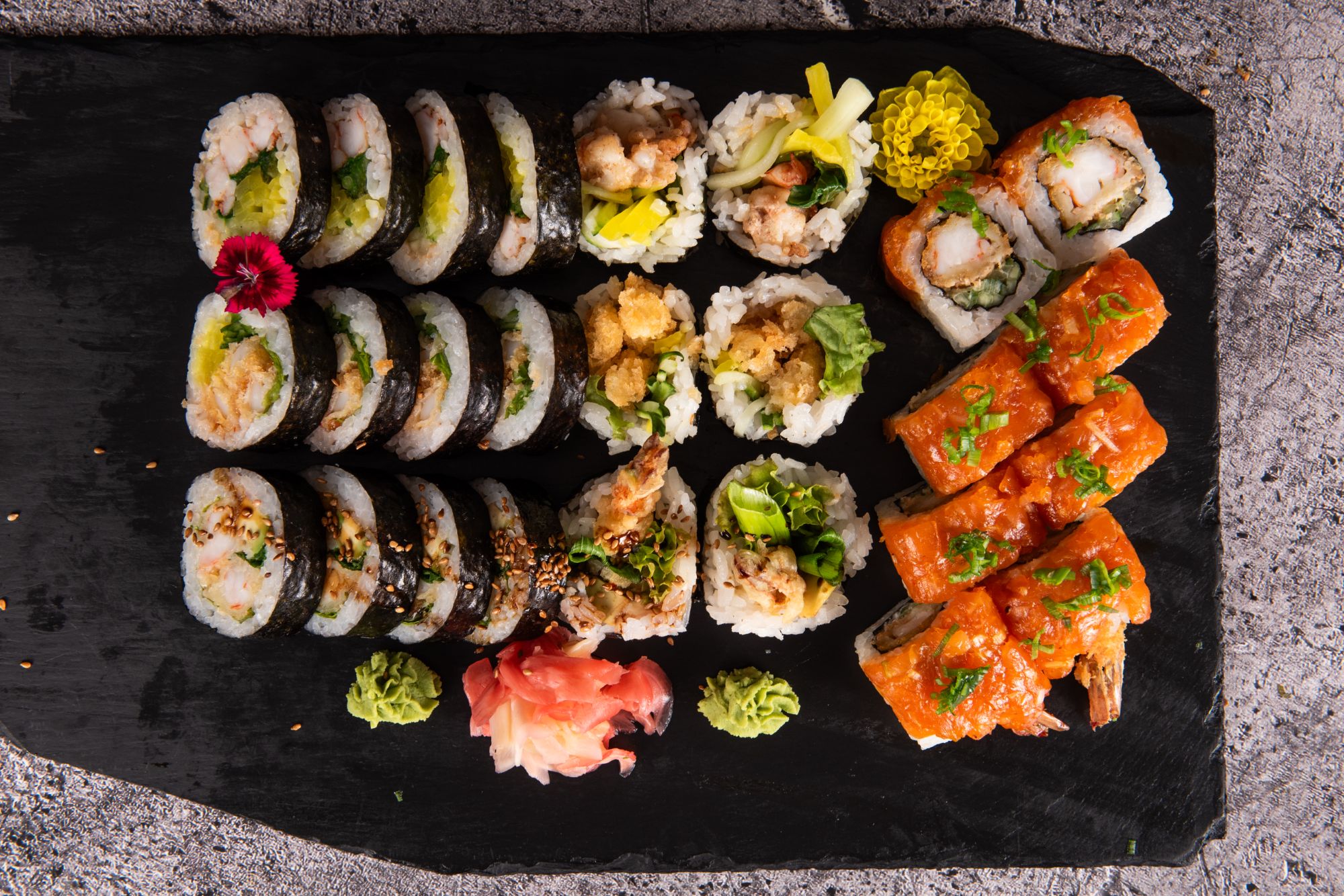 6 x futomaki z łososiem w panko (mango, ogórek, sos sezamowy, sos kabayaki, sezam)