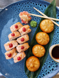 8 x uramaki z krewetkami w panko oraz tatarem z łososia